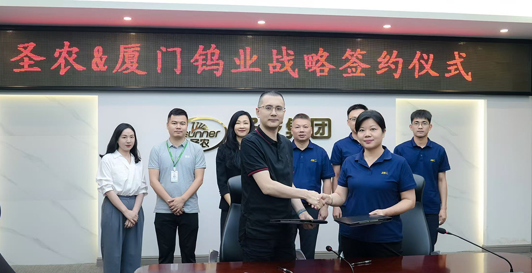 7月2日,廈門鎢業股份有限公司及廈門勢拓智動科技有限公司,與全球白羽肉雞行業領導者——福建圣農發展股份有限公司,在圣農集團總部舉行戰略合作簽約儀式。廈鎢集團常務副總裁兼勢拓智動董事長鐘可祥、勢拓智動總經理李宓貞一行,與圣農集團董事長傅芬芳、副總裁安翔等高管出席會議。